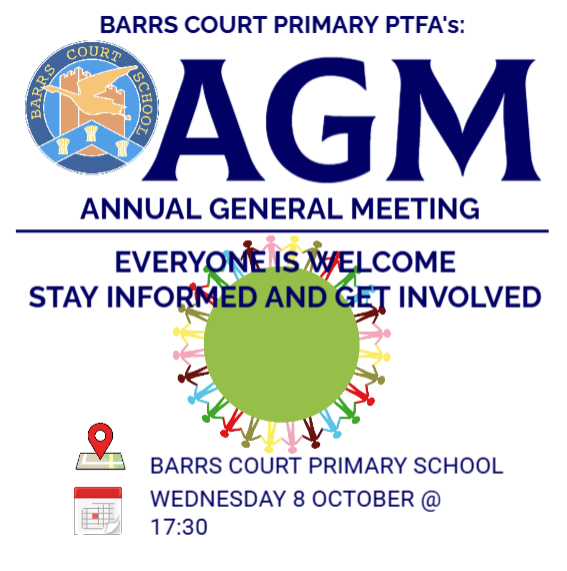 We’d like to invite you to our PTFA Annual General Meeting (AGM), where we’ll reflect on the past year, discuss upcoming plans, and, most importantly, come together as a community to continue making a difference in the lives of our children at Barrs Court School.