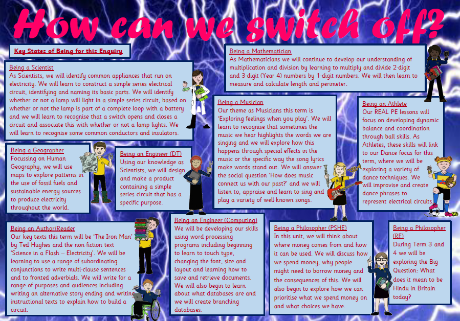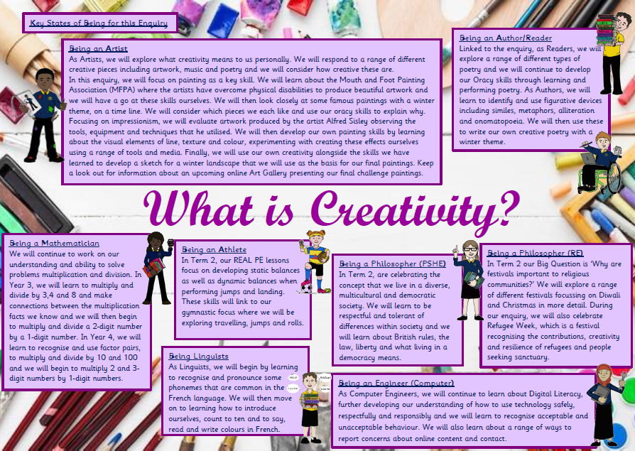 Each term, the children have a new enquiry question to answer which allows them to immerse themselves in their learning, taking on different states of being in the process (eg scientist, geographer, philosopher etc). By the end of an enquiry, the children will be able to answer the question, drawing on all of the engaging activities they have taken part in during the term. Each term, the enquiry web will be posted so you can see what your child will be learning. Ask them lots of questions – we know they will be able to talk about their learning confidently – the children love our enquiry approach to learning!