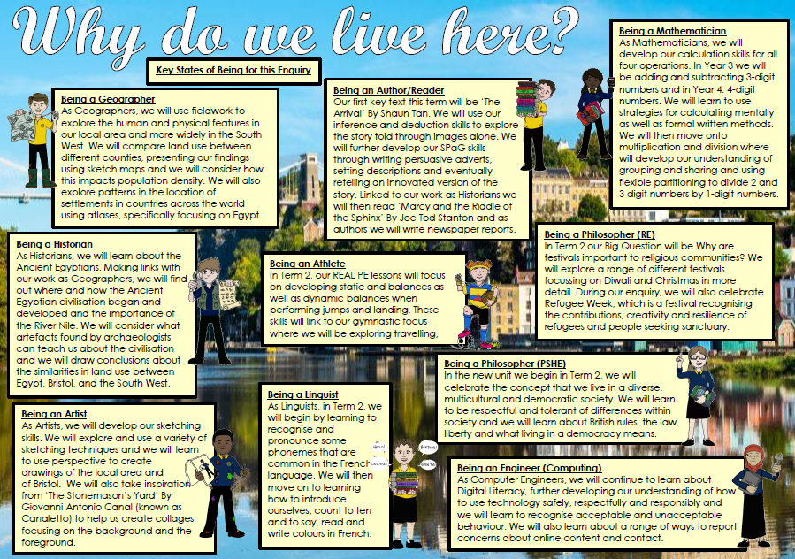 Each term, the children have a new enquiry question to answer which allows them to immerse themselves in their learning, taking on different states of being in the process (eg scientist, geographer, philosopher etc). By the end of an enquiry, the children will be able to answer the question, drawing on all of the engaging activities they have taken part in during the term. Each term, the enquiry web will be posted so you can see what your child will be learning. Ask them lots of questions – we know they will be able to talk about their learning confidently – the children love our enquiry approach to learning!